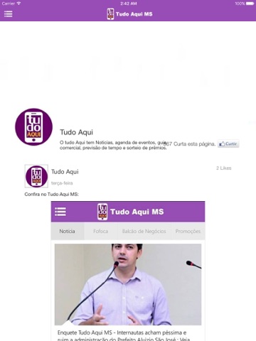 O tudo Aqui tem Noticias, agenda de eventos, guia comercial, previsão de tempo e sorteio de prêmios. Alem de ficar bem informado você ainda poderá ganhar prêmios. Aconteceu algo na cidade o Tudo Aqui te avisa na hora do fato. Experimente essa nova forma de se manter informado.