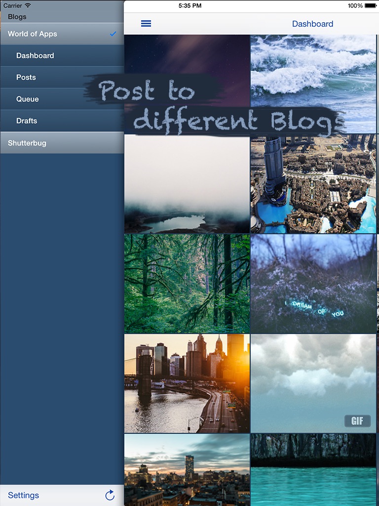 Its the perfect tool for Bloggers to keep their Blogs active. Instantly queue and reblog pictures from your Dashboard, or browse tagged posts. In case you wont be able to get on Tumblr for a while, just set up a queue on tumblr and queue up some pictures. They will get posted automatically later.