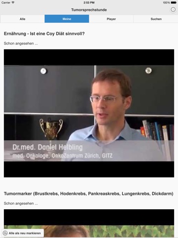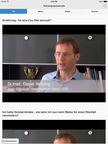 Die App Tumorsprechstunde wurde für Patientinnen und Patienten entwickelt um Videos, die auf dem zugehörigen YouTube-Kanal regelmässig publiziert werden, bequem anschauen zu können..