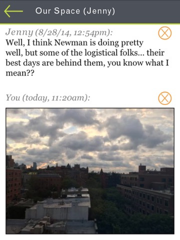 If both happen to be in the app ("in the tunnel") simultaneously, they exchange messages immediately, as online "chat." But go ahead and write or read messages any time. Messages are preserved in an ongoing conversation.
