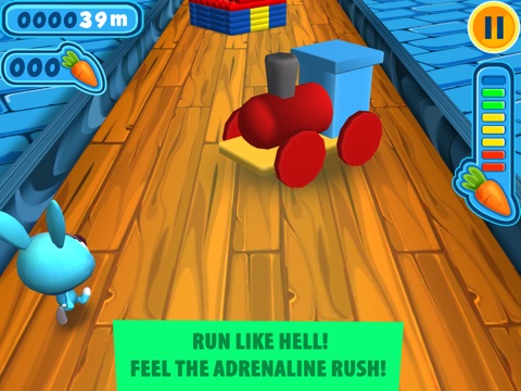 Get ready for the most intense running & racing game, most stunning visuals, and a completely new simulation of speed. Rush through the playroom racetrack and beat all your friends! This "mini race" with the cutest racer bunny will win your heart! But, watch out because this racing game for kids and adults can be seriously and insanely addicting and youll probably get hooked on this bunny "fun run" game sooner than you think! Race, run, dash and dodge – win this cute and crazy arcade race - Turbo Fast Bunny is here to show you what some serious speeding looks like! Ready, Steady, Gooo!