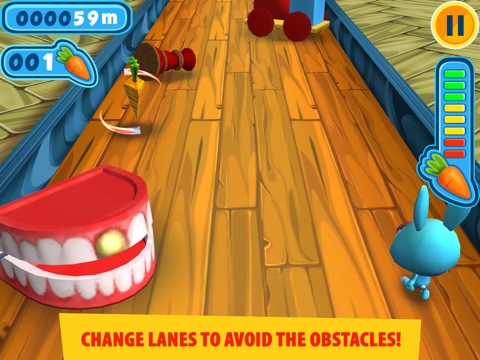 - Fun and exciting gameplay – keep changing lanes to avoid obstacles and collect carrots to fill up your energy!