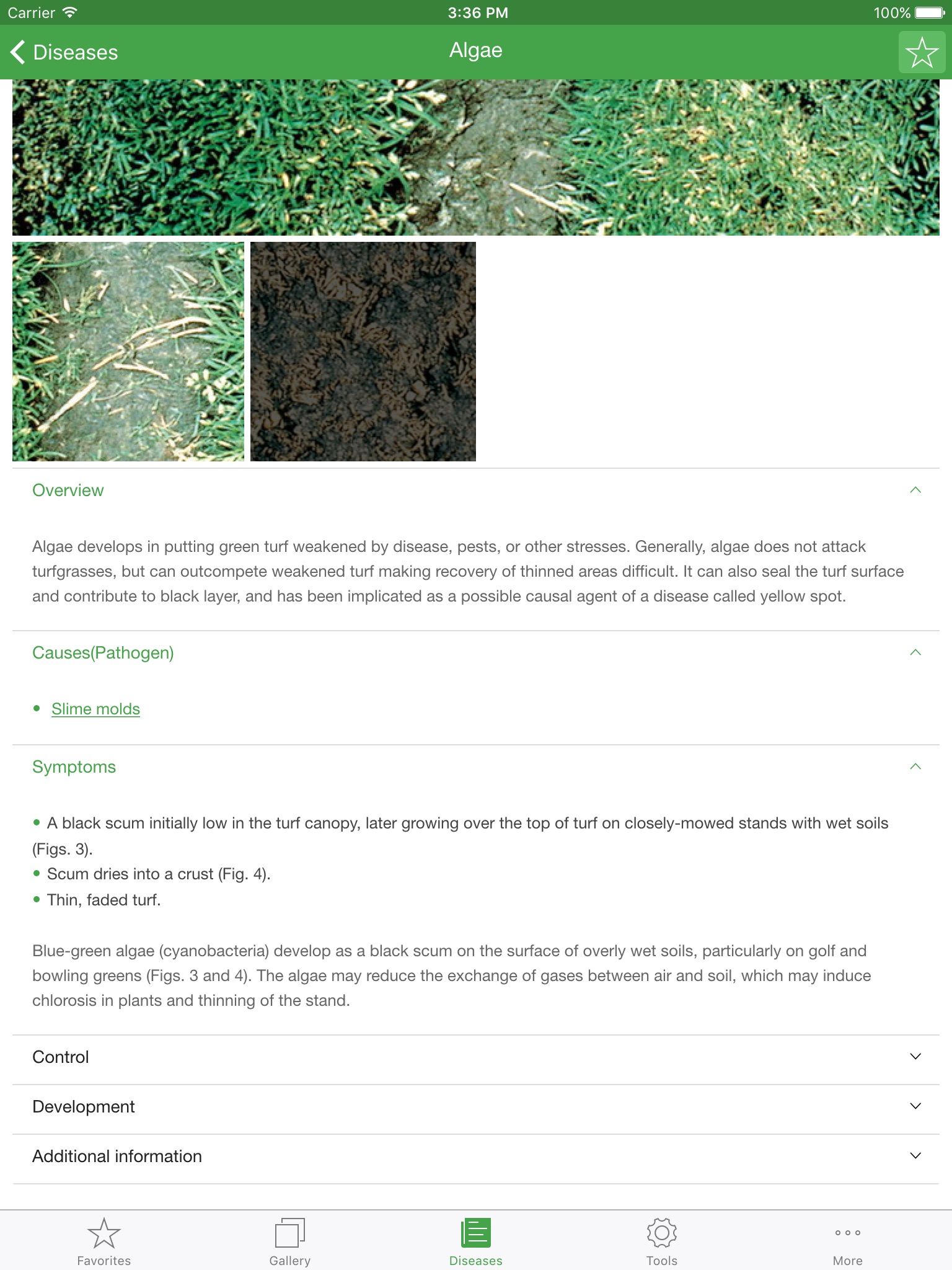 TURF MD - An interactive reference tool for the identification and management of turfgrass diseases. Turf MD was designed for golf course superintendents, sports turf managers, turf scientists, extension professionals, and anyone else responsible for turfgrass health. It includes peer-reviewed images, diagnostic keys, decision support tools, and recommendations to help users identify and treat diseases, plus a directory of turf extension sources for more information. The app’s content is based on three APS PRESS Books: Turfgrass Diseases, Third Edition (Richard W. Smiley, Peter H. Dernoeden, and Bruce B. Clarke); A Practical Guide to Turfgrass Fungicides (Richard Latin ; and additional images and keys found in the Turfgrass Diseases, Diagnosis and Management CD-Rom (Gail L. Schumann and James D. MacDonald), published by APS PRESS.