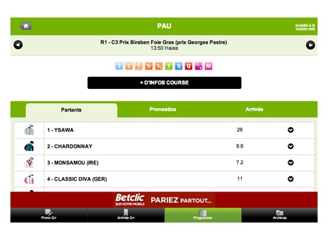 Superbe appli pour suivre le quinté. Jadore la réactivité!