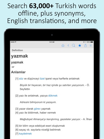 * 63,000+ Turkish definitions, all available offline! Bonus content available in online mode.