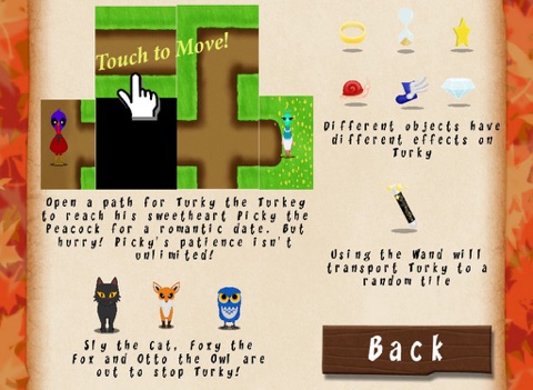 You can help Turky cross the garden by opening new paths in this new sliding puzzle adventure but be careful: Sly the Cat, Foxy the Fox and the relentless Otto the Owl are all there to catch Turky and make him miss his date!