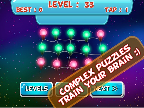 You will see some lights each level/puzzle connected to each other by wires. When you tap on a light, if the light was red, it will turn into green and it will be red if it was green. Other connected lights also follow this rule. You have to turn all lights into red to finish a level/puzzle.