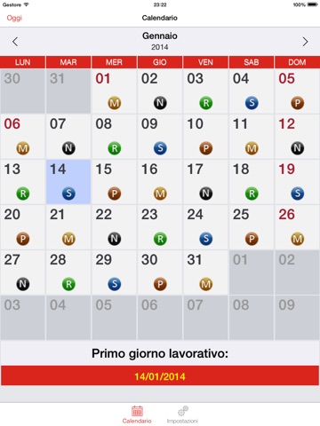 Nelle impostazioni dellapp si può scegliere il primo giorno lavorativo personale per avere sempre sotto controllo i giorni di lavoro e di riposo.