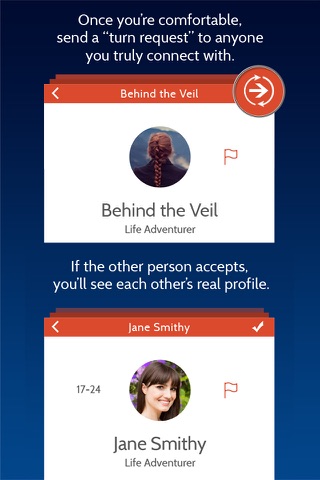 If you want to find out who youre chatting with, simply send the other person a "turn request". If they accept, you both will see each others Real profiles. Simple, right?