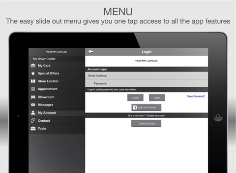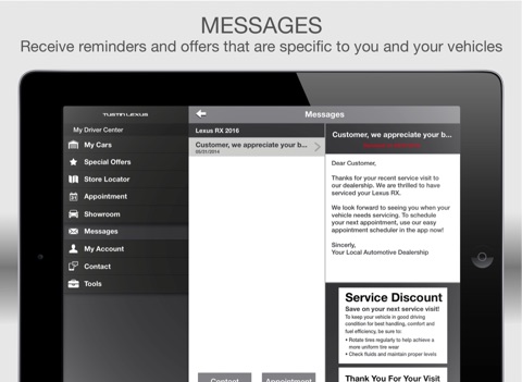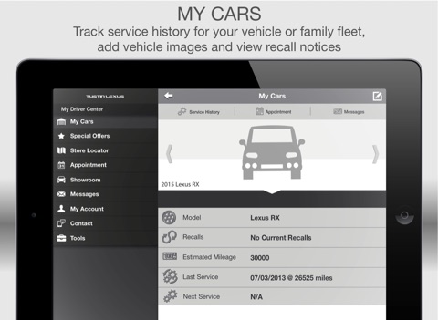 Make your vehicle ownership experience easy with the free Tustin Lexus mobile app. This feature-rich app allows you to get the most out of your vehicle by helping you to maintain and organize essential car details like service history, as well as save money with mobile offers and coupons!