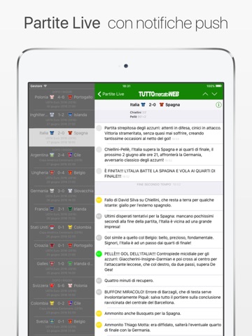 Puoi assistere alle cronache live dei match più importanti.
