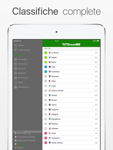 Facile consultazione. Ottimi i canali dedicati per squadra. Le notizie di mercato spesso non sono attendibili, in stile Sportitalia...