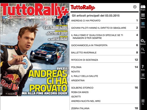TUTTORALLY+ è la rivista italiana di riferimento dedicata agli appassionati di rally. Il magazine tiene informati su tutti gli eventi nazionali e internazionali. Parla del mondo delle corse su strada con approfondimenti, cronaca, inchieste, interviste e servizi speciali dallattività minore fino alle competizioni iridate. Inoltre, informa sulle novità tecniche e sui regolamenti delle vetture e delle competizioni. Ampio spazio viene dedicato alle prove delle auto da gara con test esclusivi e mensilmente fornisce le anticipazioni degli eventi in calendario. TUTTORALLY+ è da oltre 30 anni il mensile di rallysmo, apprezzato da tutti gli amanti delle competizioni su strada.