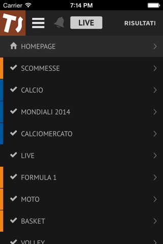 E possibile configurare il menù con gli sport che preferisci e impostare la propria squadra del cuore.