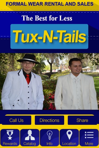 Tux-N-Tails is located in Visalia, Ca and offers high quality formal wear in suit rentals and sales. Our large inventory consists of over 700 different colors and a huge variety of styles and sizes. We believe in offering personalized customer service and individualized care to each of our clients, that is why we are offering this free mobile app! Our mobile app is an easier way to communicate with our customers & offers rewards & discounts for being a loyal customer!