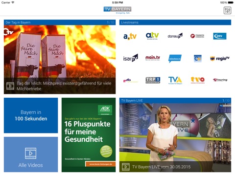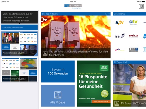 Sehen Sie alle Programme der bayerischen Regionalsender im 24-Stunden Livestream. Wählen Sie Ihre individuellen Nachrichten- und Videokategorien aus und speichern diese auf Ihrem App-Screen. Entscheiden Sie sich für einen Homescreen Ihrer Wahl mit jeweils individueller Darstellung der Nachrichten- und Videoinhalte.