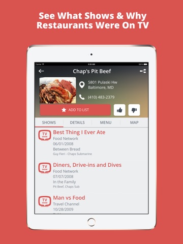 TV Food Maps - Restaurants on TV, Road Trip Planner, Diners, Drive-Ins & Dives, Man vs. Food & More at Mac App Store analyse