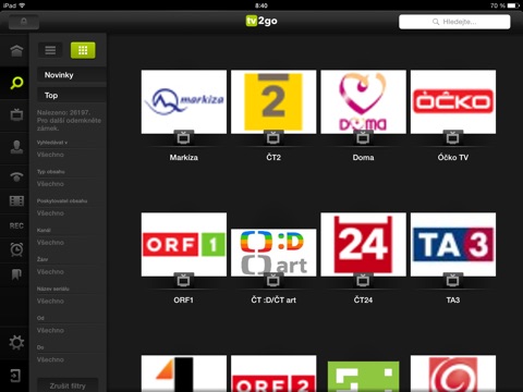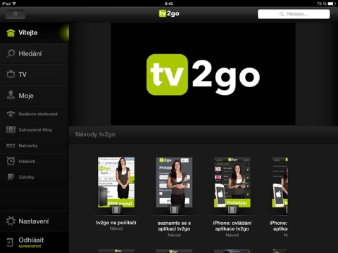 K používanie aplikácie je potreba účet, ktorý je možné získať len cez vybrané partnermi a predajné kanály. Viac informácií na www.tv2go.eu.