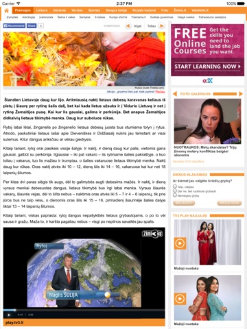 - Lietuvos, Verslo, Užsienio, Gyvenimo, Pramogų, Sporto, Video rubrikų naujienas.
