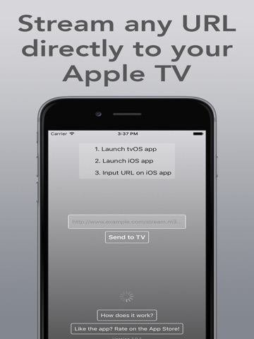 This app only works with the counterpart apple TV app "TVstream Player", available in the apple TV App Store.