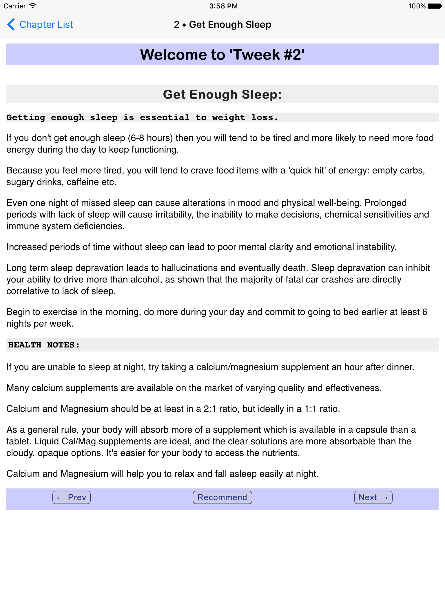 • 6 months of Tweeks will focus on enhancing basic aspects of life. Test them out one week at a time and get comfortable with each small step, then progress to the next Tweek