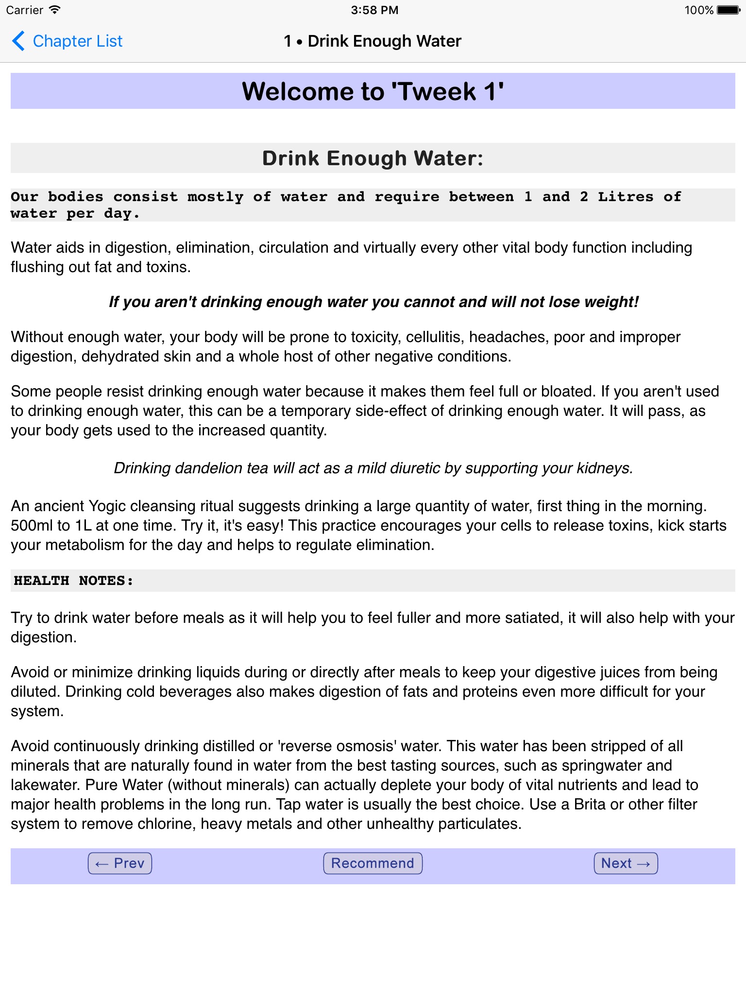 • This free version includes a detailed exploration of Tweek 1, the Healthy Living Essentials.
