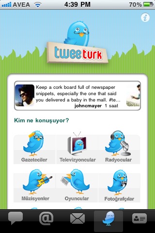Tweeturk sayesinde, güvenli bir şekilde ve Türkçe arayüzle twittera bağlanarak alışık olduğunuz tüm Twitter özelliklerini kullanabilirsiniz. Tweeturk ekibinin hazırladığı listeler ve lokal içerik derleme becerisi sayesinde, Türkiyeden Twittera bağlanan ünlülerin neler konuştuğunu takip edebilir, etrafınızda veya şehir şehir neler konuşulduğunu görebilirsiniz. İyi tweetlemeler!