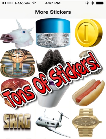For your photobooth images choose from a wide variety of stickers including text, masks, gold, shades and even kittens & sharks! You can also take pics and "make it rain" in your photos!