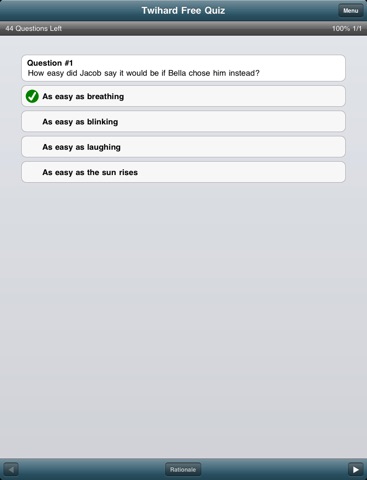 This free app includes a sample quiz which contains some of the most popular questions from each of our twihard trivia packs and allows you to test out all the features before you purchase the in-app quiz packs.