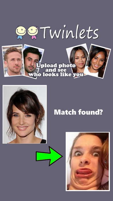 Twinlets is a crazy and funny app with will match your photo with 150 million faces in our global faces database and find the best match.