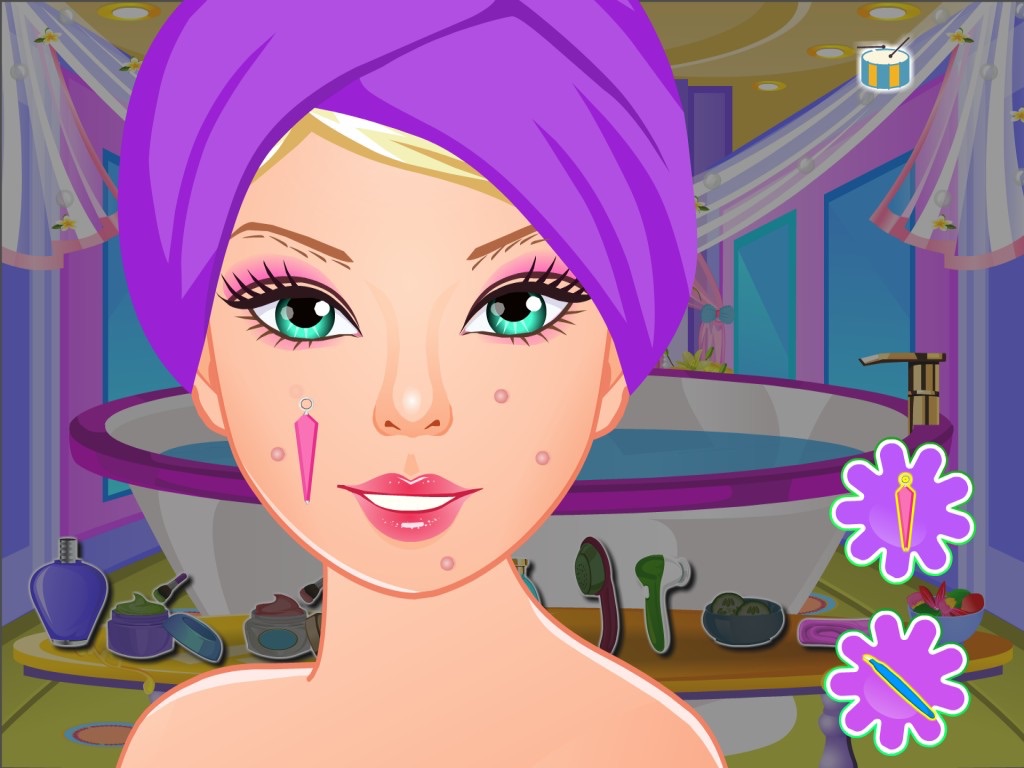 Did you know that Barbie has a twin sister? If not, this is your chance to meet her! Both Barbie and her sister want to have a spa treatment today, so get them at your salon and make them look beautiful. You will have to choose them separately, put them in the bath tub and fill it with water, apply a scrub that will make the skin very smooth, then apply a delicate cleanser that will purify the skin, a fruity face mask full of vitamins that will nourish the skin and bring out a natural glow and some tomatoes slices on the eyes to make the dark circles under them disappear. Pop out all their pimples and define their eyebrows with a pair of tweezers. Put a special lotion in the water to hydrate their skin, wash their hair with shampoo, blow dry it and wipe the body with a soft and fluffy towel. Finally do their hair and apply make-up. Enjoy!
