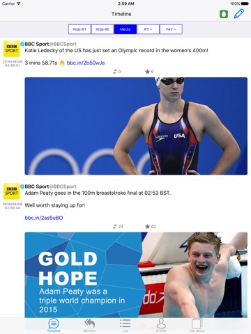 - Tweet filtering function (Hide RT, Hide RE, Media, 1 or more RT, 1 or more FAV, NG word, etc.) has also been enhanced, it can be easily display only the tweets purpose.