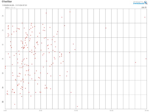 - Displays a graph based on tweeted time. You can do a trend analysis of twitter user.