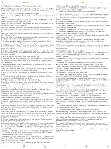 The application for a parallel reading of different translations of the Bible, with fast switching between translations / versions. At the same time on the screen, you see the two translations. Swipe left or right you switch between the two additional translations. So you have quick access to four different translations of the Bible.