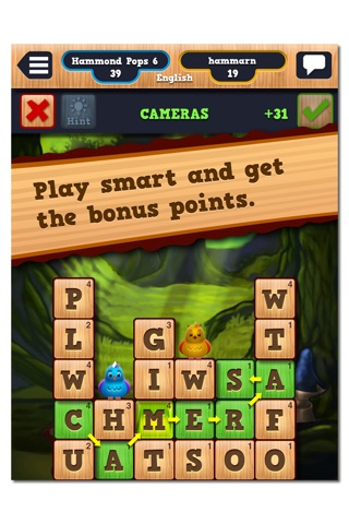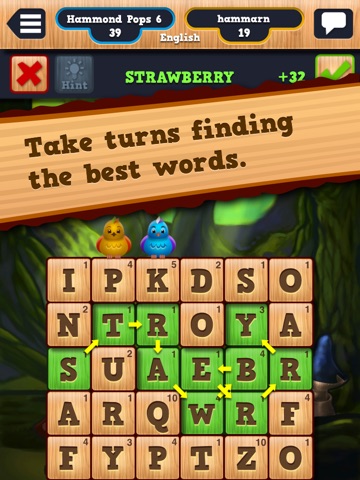 Take turns finding the best words and remove the letters from the board. Play smart and get the bonus points.