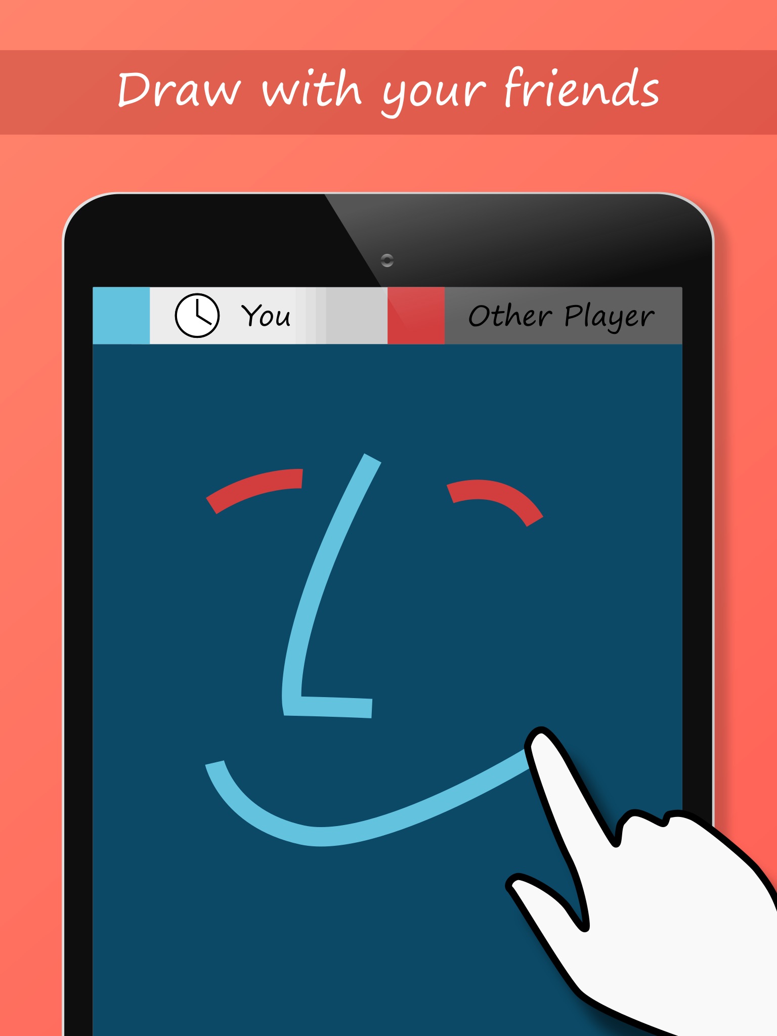 At the beginning a topic is chosen. When the other player draws her/his two lines you can watch it live. The final result is an unique drawing which is made by two people. The app also has a magnet tool which makes it easy to stick to the endpoints of any line. This can be very helpful when you want to draw geometrical paintings. You can draw alone, with a random person or with your friends.
