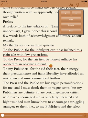 Font size and Font type. Brightness,Background selection.