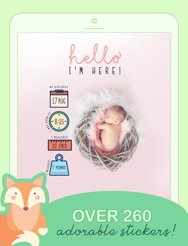 Make your baby’s photos stand out with the cutest stickers out there, great filters and frames.
