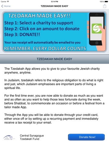 The Tzedakah App allows you to give to your favourite Jewish charity whereever and whenever you want. The Tzedakah App allows you to donate as much as you want and as often as you want to help those less fortunate during the week, before Shabbat, to commemorate an occasion or before a festival. In Judaism, tzedakah refers to the religious obligation to do what is right and just, which Judaism emphasises are important parts of living a spiritual life.