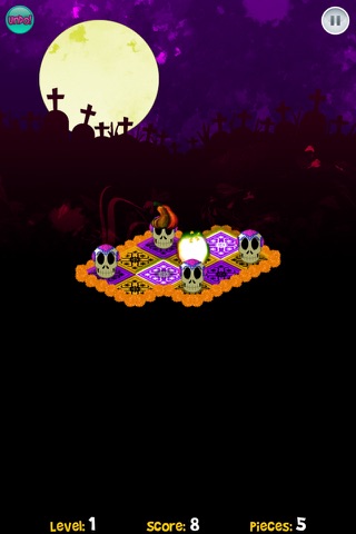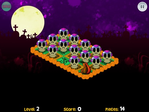 The objective is that the player has a board with skulls in vertical and horizontal form with one or many empty tile at the beginning of the game, which will change every new level.