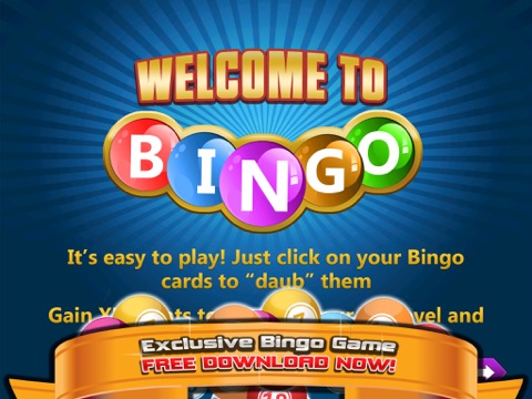 Come & play free Bingo & tons of fun are waiting for you. Come back daily and earn additional BONUS coins & thats just the beginning! Each game you win will awards experience to level up & unlock new level! Unlock all the levels & become the CHAMPION!