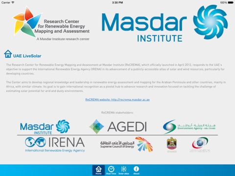 Access easily solar radiation information over the United Arab Emirates. This application provides real-time irradiance data, as well as an interactive GIS platform to access monthly and yearly maps and simple analysis tools.