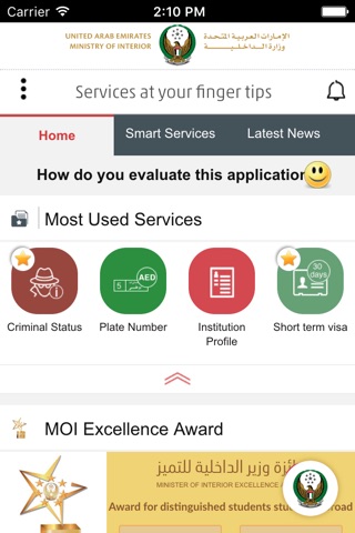 In addition to the smart services, the application provides many smart features such as the nearest service center location as well as a ticketing service to book your appointments before heading to service centers. It also provides news and information about the Ministry of Interior of United Arab Emirates.