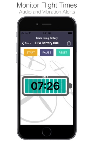 - Set a custom land time, allows you to create an alert that will fire with an audio and vibration alert X minutes before the battery expires.