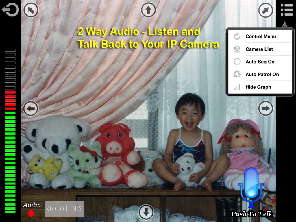 ▶ 2 Way audio with Push To Talk (Apexis, Axis, Foscam)