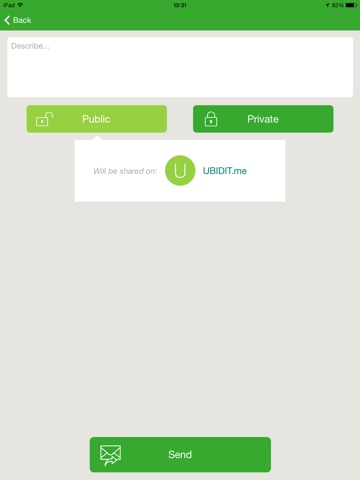 Public UBIDIT will be shared on Ubidit.me website and Private will be sent to one of your contacts you choose.