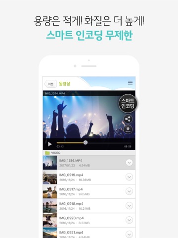 ※ 동영상 클라우드의 원본 파일은 아이폰 단말 지원 문제로 재생이 되지 않을 수 있습니다. 가급적 인코딩하여 이용해 주세요.