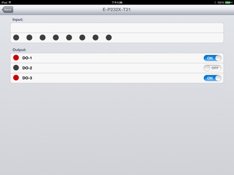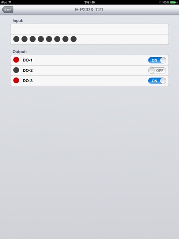 Use this tool to access your UBox-2, an input/output controller also from UniSVR, from your iOS device. Just start this APP and UBox-2 in your local network will be automatically searched and displayed, choose one to control it. There are 8 DI (digital input) indicators to display the DI states and 3 DO (digital output) toggle buttons to control the DO. Thank you and enjoy!