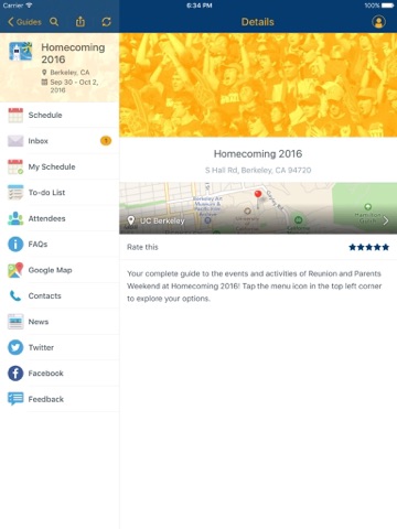 Your handy mobile guide to major events at the University of California, Berkeley. You can find schedules, maps, and information to help you navigate events at Cal.
