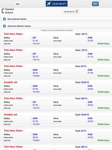 Uçuş süresini görebilir, en ucuz ve en konforlu seferi seçebilirsiniz,